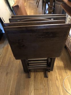 Four Wooden Snack Trays With Stand Beveled Top$40Garden City P, NY