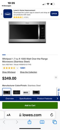 Whirlpool 1.7 Cu Ft 1000 Watt Over The Range Microwave-Stainless Steel$150San Jose, CA