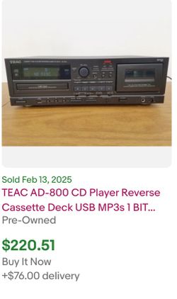 TEAC AD-800 CD Player Reverse Cassette Deck USB MP3s 1 BIT DAC Dolby - NO REMOTE$200Cape Coral, FL