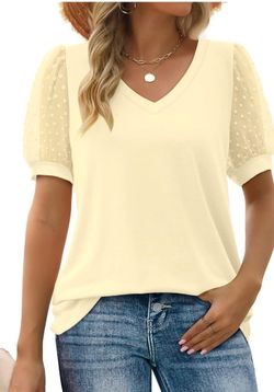 Apricot Womens Summer Tops 2024 Short Sleeve V Neck T Shirts Swiss Dot Puff Sleeve Tops Loose Casual Tshirts$10Sacramento, CA