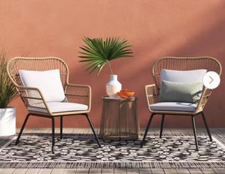 3-Piece Wicker Outdoor Bistro Set Modern Patio Table and 2-Chairs with Beige Cushion$150Ontario, CA