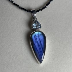 Blue Topaz & Labradorite Pendant Black Spinel Chain $125Bexley, OH