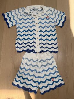 Casablanca blue and white knitted shorts and shirt set$350Los Angeles, CA