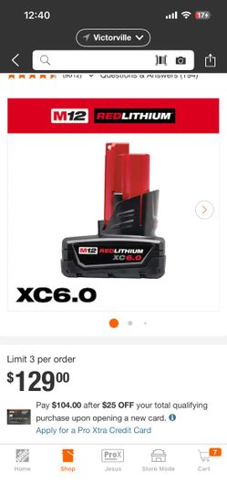 Milwaukee M12 Baterry 6.0$75Victorville, CA