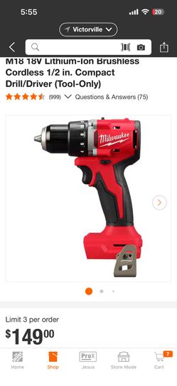 Milwaukee M18 Brushless Drill$90Adelanto, CA