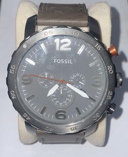 FOSSIL NATE CHRONOGRAPH GREY LEATHER MENS SMOKE ION PLATED STEEL WRIST WATCH$100Oak Park, IL
