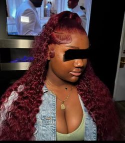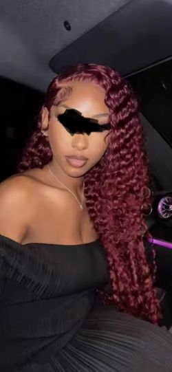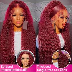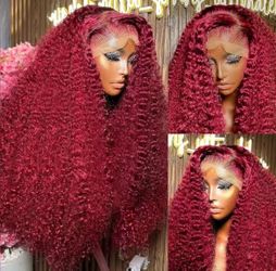 34 Inch Burgundy 99j Deep Wave Frontal Wig Colored Curly Human Hair Wigs 200 250 Density 13x4 Hd Lace Frontal Human Hair Wigs$125Fort Lauderdale, FL