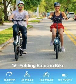 16" Electric Bike, Max 25Miles Range(Pedal-Assist) & Speed 15.5 Mph Power 350W Motor, Folding E-Bike with Removable Battery$550Fresno, CA