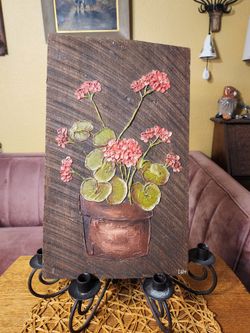 Vintage Signed Texture Painting on Wood Plank of Geraniums$50Lakewood, WA