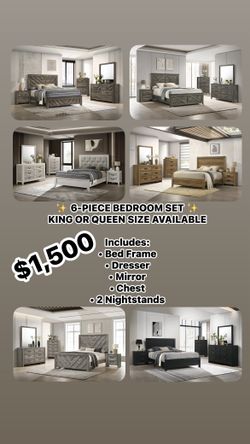 ✨ 6-PIECE BEDROOM SET ✨ KING OR QUEEN SIZE AVAILABLE Includes: • Bed Frame • Dresser • Mirror • Chest • 2 Nightstands$1,500Chicago, IL