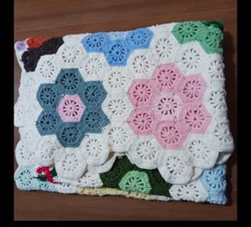 Handmade Crochet Blanket Afghan Throw Hexagon Granny Square Floral Colorful$50Wilmington, DE