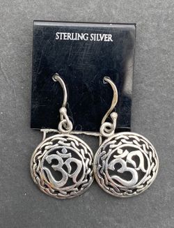 Sterling Silver OM Symbol Dangle Earrings Meditation Prayer 925 hook $20Palmdale, CA
