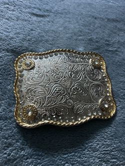 western-style belt buckle 4.5β x 3.5β$20Arrowhed Farm, CA