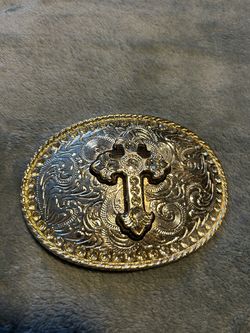 Silver Engraved Flower Filigree Rhinestone Filled Raised Cross Belt Buckle Great new 5βx4β$15San Bernardino, CA