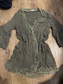 Olive green flowy open cardigan with crotchet lace design. Size M kimono$12San Bernardino, CA