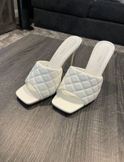 White Cream Slide Heeled Mule Sandals $10Huntington Beach, CA