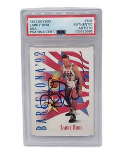 1991 Skybox Team USA #531 Larry Bird Signed Auto On Card Basketball PSA DNA Autograph 10