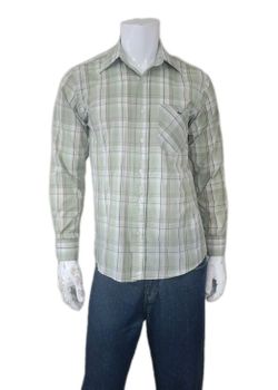 Lacoste Long Sleeve Green Brown Button Down Plaid Cotton Shirt Men's Size 40 or Medium