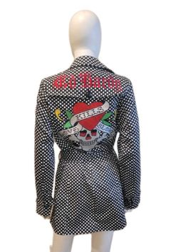 ED HARDY Black White Polka Dot Belt Skull Rhinestones Trench Coat Women's Size M$150Las Vegas, NV