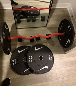 Nike Home Gym Set – Curl Bar, Bumper Plates & Dumbbells – Excellent Condition$400Friendswood, TX