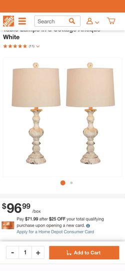 26.5 in. Pair of Distressed Resin Table Lamps in a Cottage Antique White