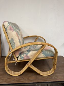 Vintage Mid Century Modern Rattan Bamboo Pretzel Tropical Print Lounge Chair $750Pittsburgh, PA