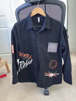 Men’s black long sleeve button-up shirt with bold streetwear graphic prints. Displayed item. Never wear. Features: • All-over graphic print on fron$12Newark, CA
