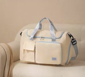Large Travel Duffel Bag Weekender Carry On Luggage w/ Shoulder Strap Beige Sports Bag Beige unisex Only used one time for emergency travel. Like new $8Newark, CA