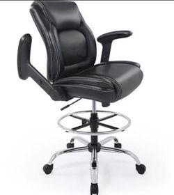 Ergonomic Mid-Back Leather Adjustable Drafting Chair with Multi-Function Arms and Foot Ring, Standing-Desk Matched Tall Swivel Computer Office Stool, $100Monterey Park, CA