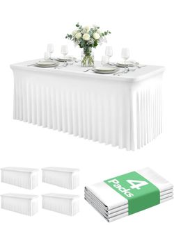 4 Pack Spandex Table Cover Skirts for 6ft Rectangle Tables, White Stretch Table Cloths with Floor-$55Pomona, CA