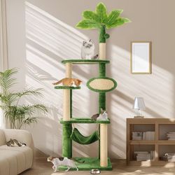 61" Cat Tree for with Green Leaves, Multi-Level Large Cat Tower with Hammock, Plush Cat House with Hang Ball Toy and Sisal Scratching Posts Furniture$50Phillips Ranch, CA