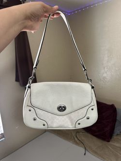 Coach Shoulder Bag – White Leather with Signature Canvas & Stud Detail$95City Of Industry, CA