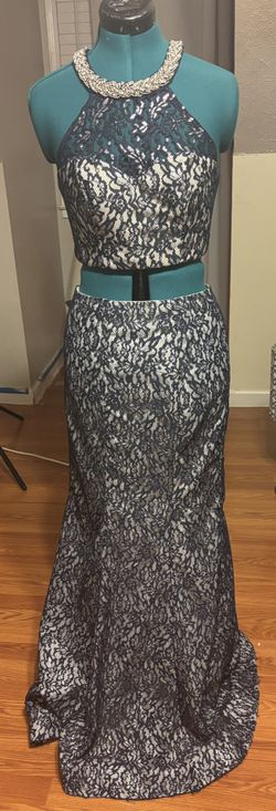 Sequin Hearts By Michelle Two Piece All Over Lace Navy Party Cocktail Dress,Top size 5, Skirt Size 7$45Greenville, SC