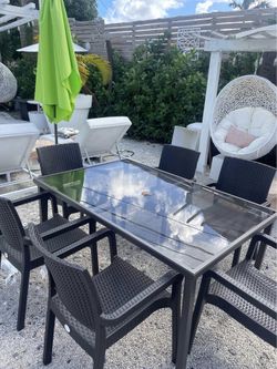 Outdoor Patio Tempered Frosted Glass NEW Table With 6 Outdoor Patio Stackable Chairs $250Miramar, FL
