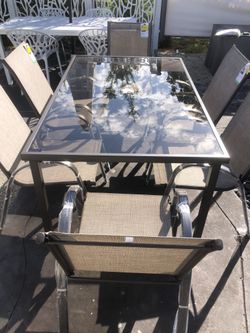 Outdoor Patio Tempered Frosted Glass NEW Table With 6 Outdoor Patio Aluminum Stackable Chairs $250Miramar, FL