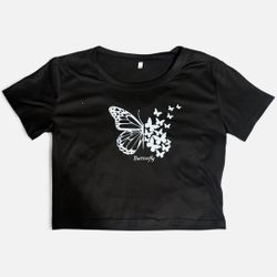 Women’s Large Black with White Vinyl Print Butterfly Short Sleeve Crop Top$5Lyndhurst, NJ