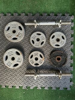 Two dumbbell handles and standard 1” weights plates $30Tampa, FL
