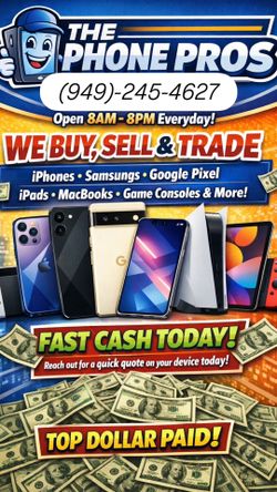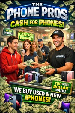 Here at The Phone Pros, we specialize in buying, selling, and trading phones with a focus on providing fast, reliable, and hassle-free service. We proudly pay top dollar for iPhones and Samsung devices, whether youβre upgrading, downsizing, or simply looking to turn your device into quick cash. Our goal is to offer fair, competitive pricing and a smooth experience from start to finish. With a strong commitment to customer satisfaction and honest evaluations, weβve built a reputation as a trusted local destination for all your phone buying, selling, and trading needs.