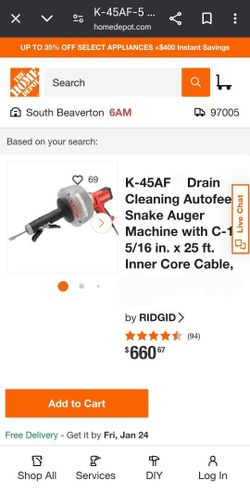 Ridgid K-45 Drain Cleaner With Autofeed Technology$200Portland, OR