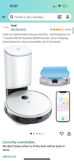 Yeedi vac Station Robot Vacuum and Mop - Self Emptying 3-in-1 Cleaner,200-Min Runtime,3000Pa Suction, Smart Mapping, Carpet Detection, Alexa Compatibl$250El Paso, TX