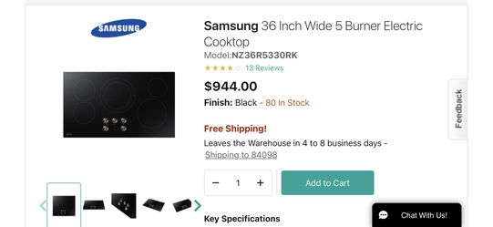 Samsung 5 Burner Electric Cooktop$600Boca Raton, FL