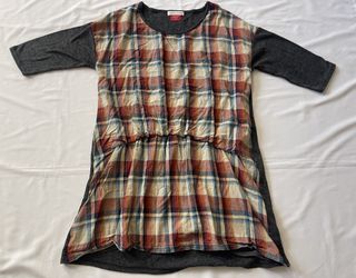 Checkered Plaid Shirt Dress Top Short Sleeve Women Large L Round Neck Waistband$13Chino, CA