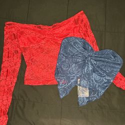 Bundle - Blue rose print halter top(M) & red lace long sleeve top (M) #y2kfashion$5Oxnard, CA