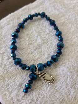 Bracelet Blue Glass Stretch Praying Hands$15Arrowhed Farm, CA