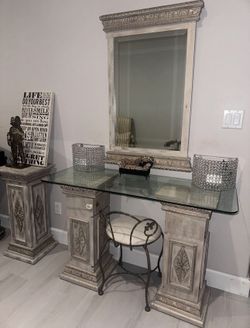 Unique Vanity Tv Stand Sell! 6 Piece - With Mirror And Glass Shelves $150Burbank, CA