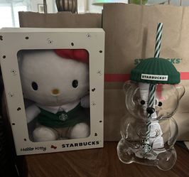 Starbucks 2025 Bearista BEAR Glass Jar Cold Cup Tumbler & Hello Kitty Plush Set$550Clarksburg, CA