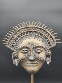 Meso American Inca Tribal Sun God Mask Brass Sculpture 16 3/4" Tall$100Dade City, FL