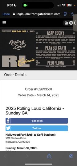 Rolling Loud Sunday Ticket$120Anaheim, CA