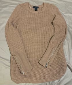 Cynthia Rowley Sweater Womens MediumTan Long Zip Sleeve Crew Neck Textured Top$20Sandy, UT