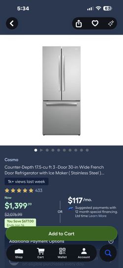 Cosmo Refrigerator $800Staten Island, NY